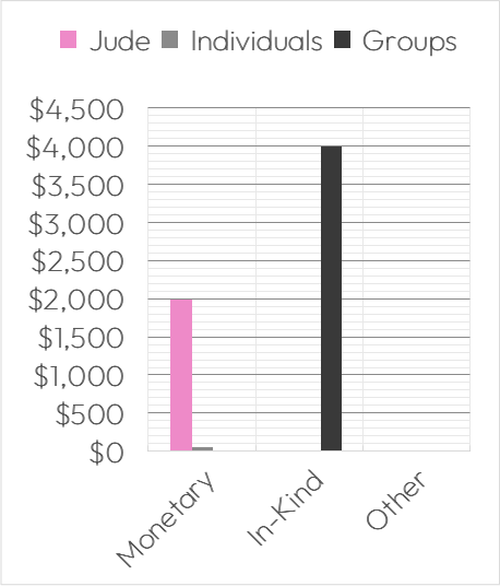 This is a weird-looking month for contributions for sure! The group in-kind donation kind of blows the scale out of proportion.