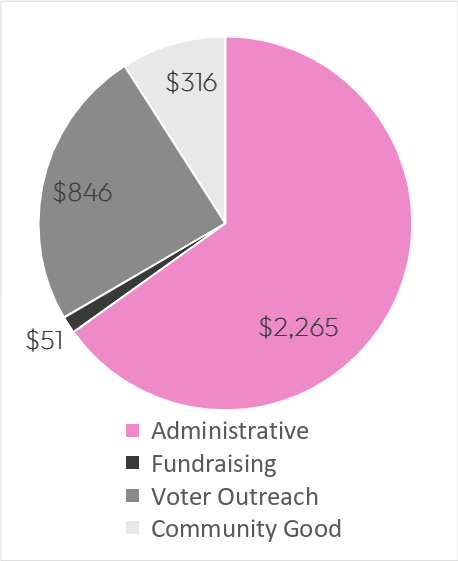 The Voter Outreach category is for advertising and voter contact. Again, we had a lot of start-up costs - the biggest of which was about $300 for a headshot and portraiture session.